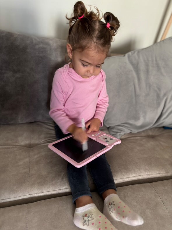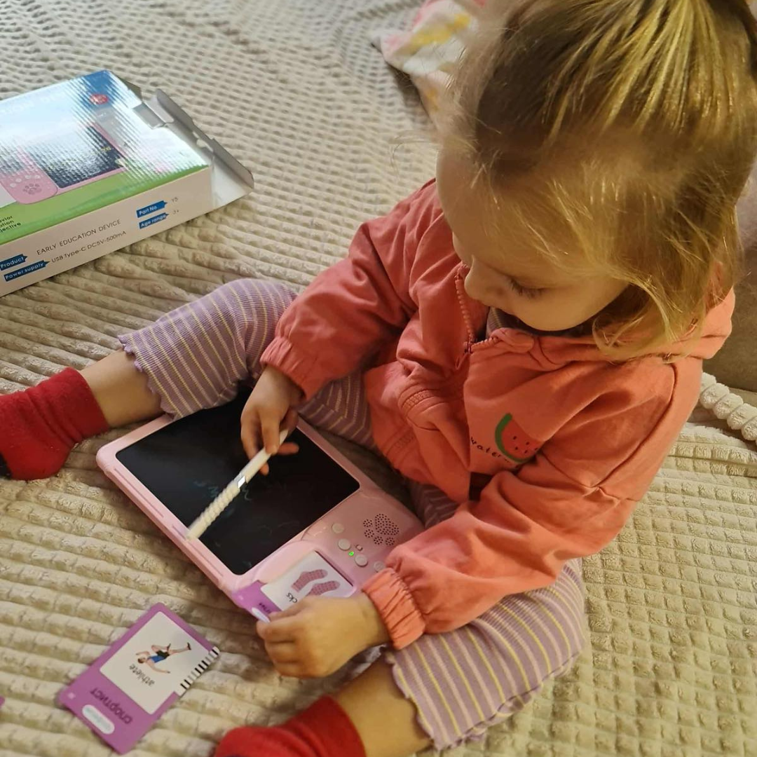 Таблетът за рисуване насърчава писането и креативността, докато детето учи нови думи.