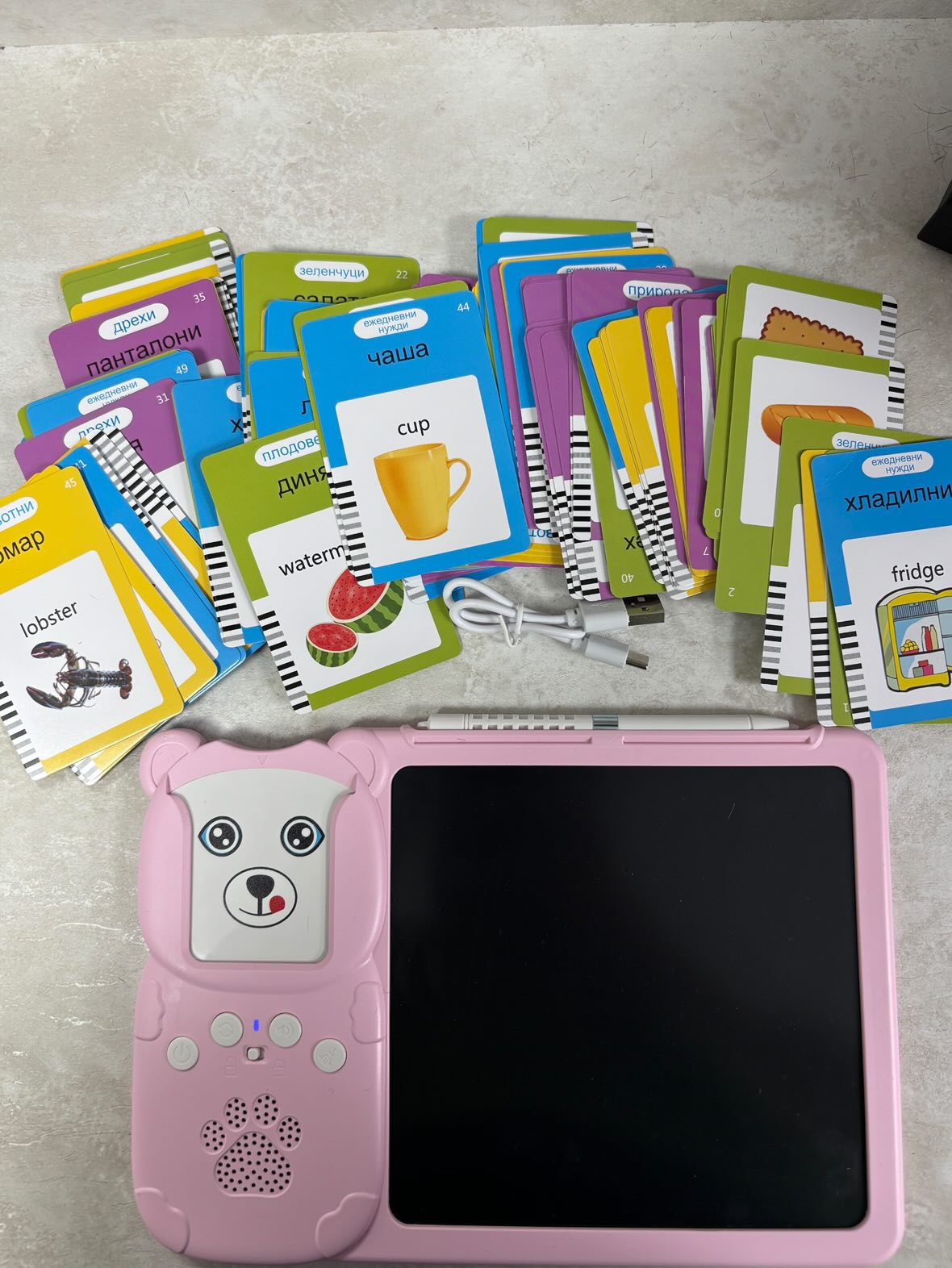 Таблетът разполага с три езикови варианта – български и английски и двуезичен. Можете да изберете кой да е активен или да използвате и двата едновременно – чудесно за ранно езиково развитие.